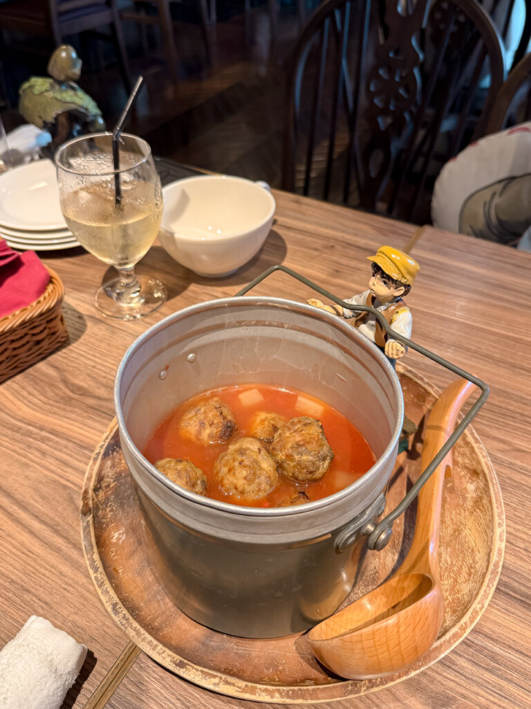 Laputa: Castle in the Sky fans, this one is for you! Remember Pazu buying that hot soup in the middle of the night? This soup is incredibly hearty. The meatballs are massive and juicy, and the broth is pure comfort. I spent so much time taking photos of the Pazu figurine next to the bowl that I almost let it get cold—don’t be like me, eat it while it’s steaming! 💨