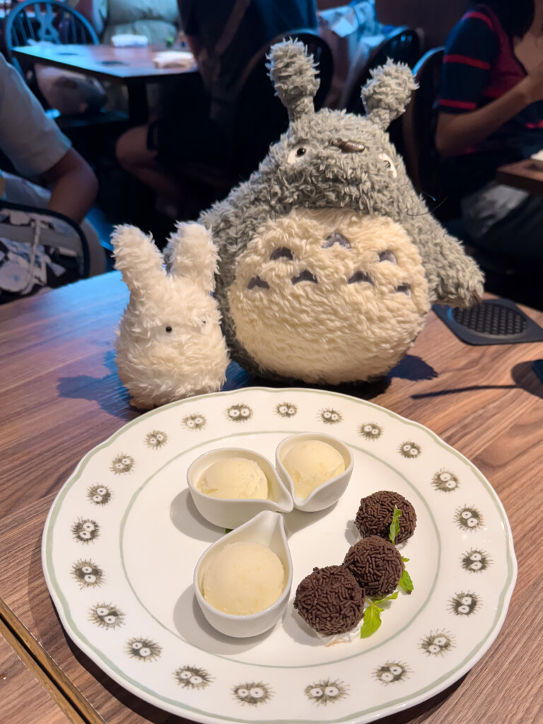 The finale is a Truffle Chocolate and Seasonal Ice Cream set, styled after the Soot Sprites (Susuwatari) from Spirited Away and Totoro. It’s almost too cute to eat. Almost. The chocolate was rich, and when paired with the Totoro figurines, it was the perfect “Instagrammable” ending to the meal.