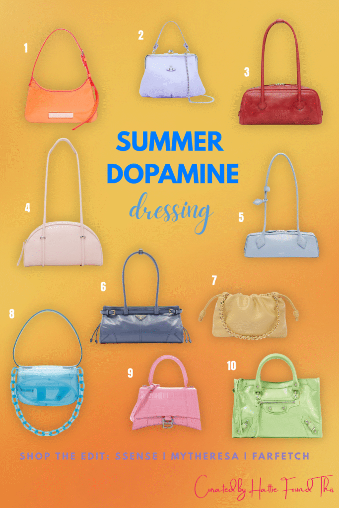 Hello everyone~ it’s Hattie💛 Can we just talk about how the sun is finally staying out later? The flowers are blooming, and I am so over my winter coat. Summer is officially around the corner, and you know what that means: it’s time to retire those moody black and beige bags and embrace some serious Dopamine Dressing.