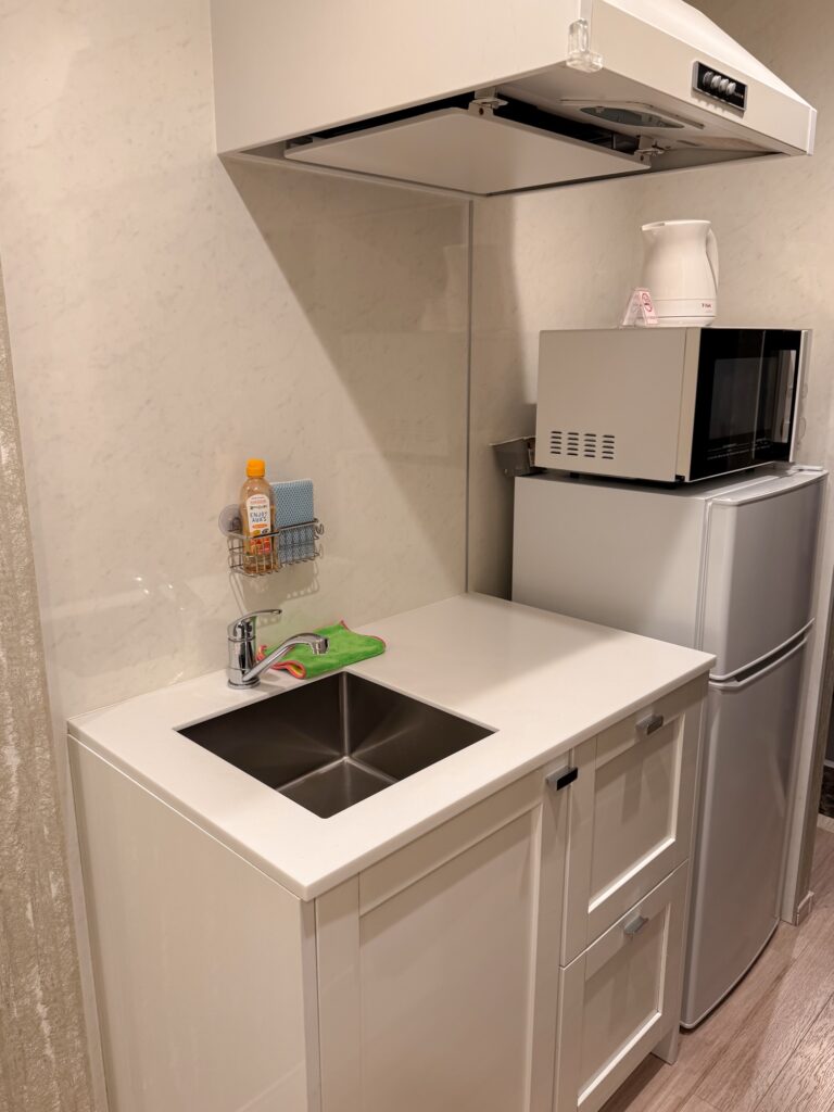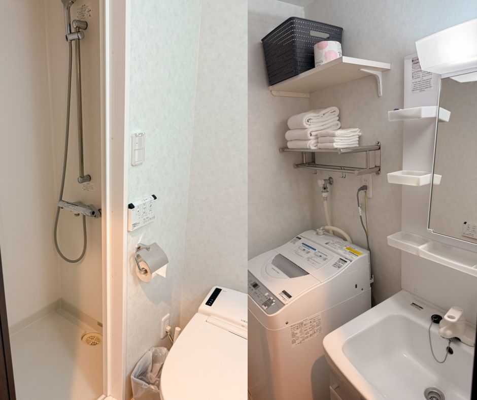 There’s also a fridge, microwave, and hangers. The bathroom? Small, yes, but it had proper dry/wet separation and strong hot water pressure 💦. After a whole day exploring Tokyo, a good shower = pure happiness🛁