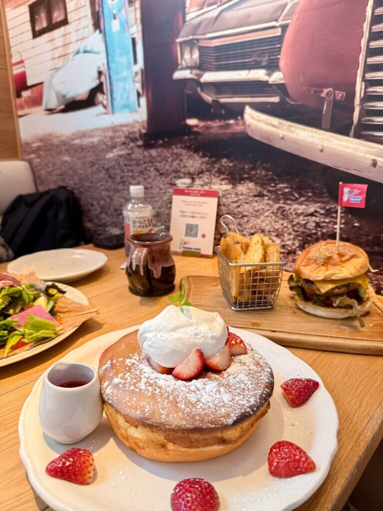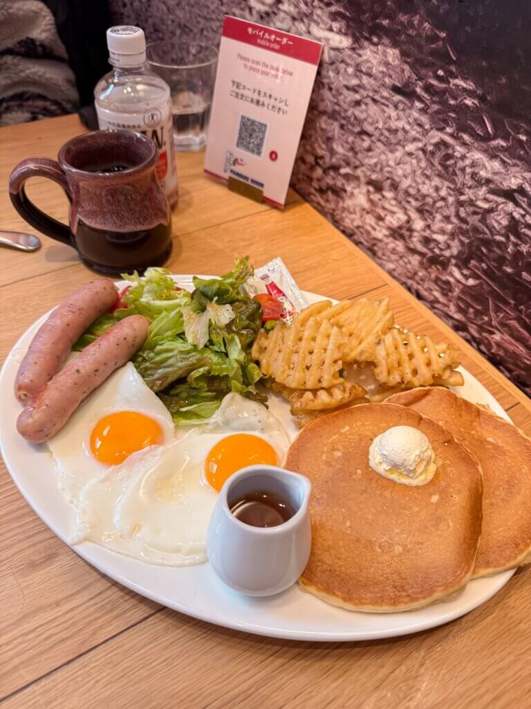 這間店其實很有趣,它是那種「美日混血兒」的血統。原本是早期創立於美國的餐廳品牌,結果開到日本之後,竟然被精緻細膩的日本職人精神改造得超成功!我是在 Reddit 上看到超多外國網友推薦,說這裡的鬆餅比起美國版更精緻,照片看起來真的就是叫我趕快去。
