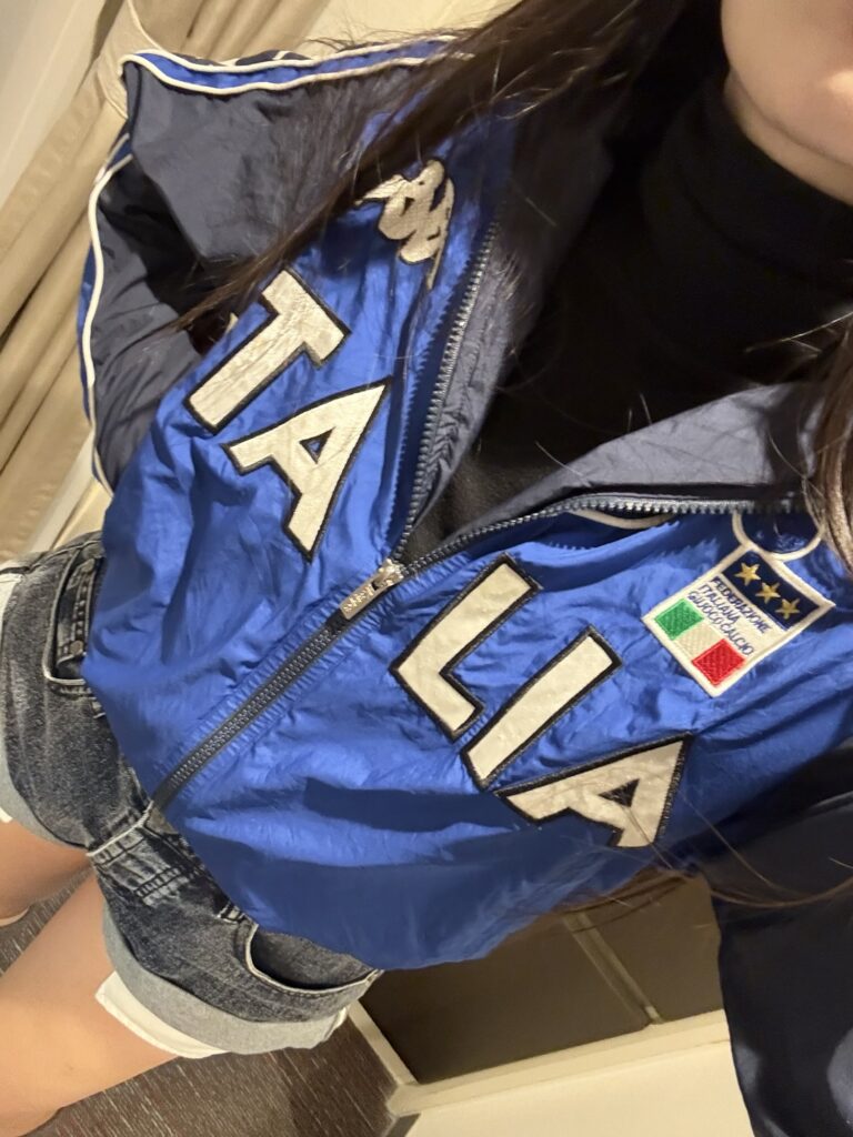 Over that, I wore an Italy national team track suit jacket—I’m obsessed with Italy soccer kits because they’re always so pretty. Sadly… they didn’t qualify for the next World Cup and I’m still processing that emotionally 🥲