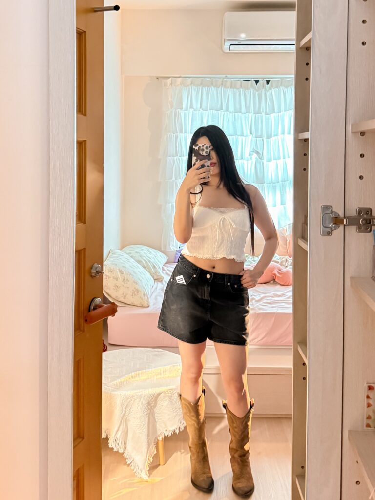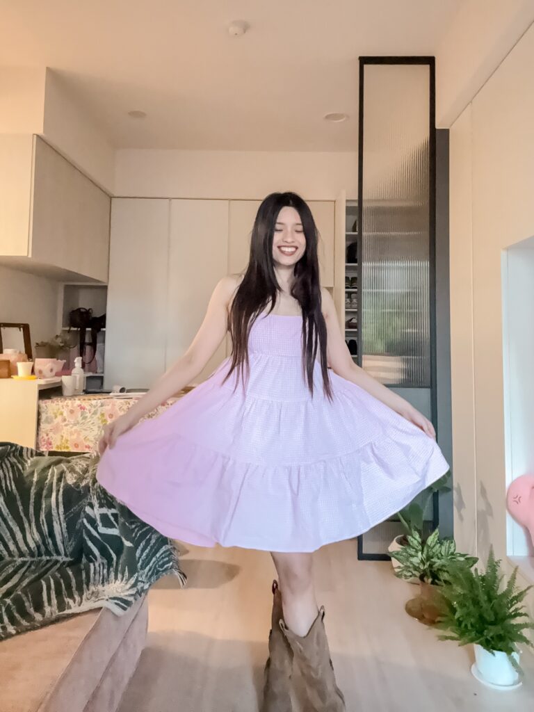 這件應該是庫存邊緣被我滑到的幸運之選~一看就覺得「我要它!」🌸布料薄、很舒服,搭上我的牛仔靴簡直少女野餐 look 完美詮釋!